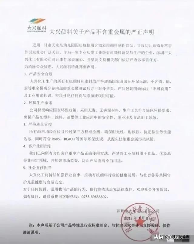 深圳市大兴化工有限公司担心此事件给他们企业带来负面影响,特意发布声明!
