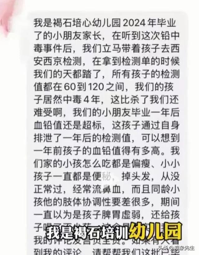 幼儿园本身是没有检测血铅的技术的,究竟是谁隐瞒了真相?这不仅是对生命的漠视,更是对法律的严重挑衅。
