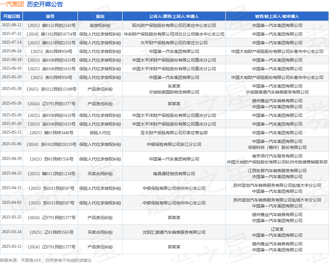 本站消息360配资网360配资网,根据天眼查APP显示,近日公布了一则中国第一汽车集团有限公司作为被告/被上诉人的开庭公告,详细内容如下: