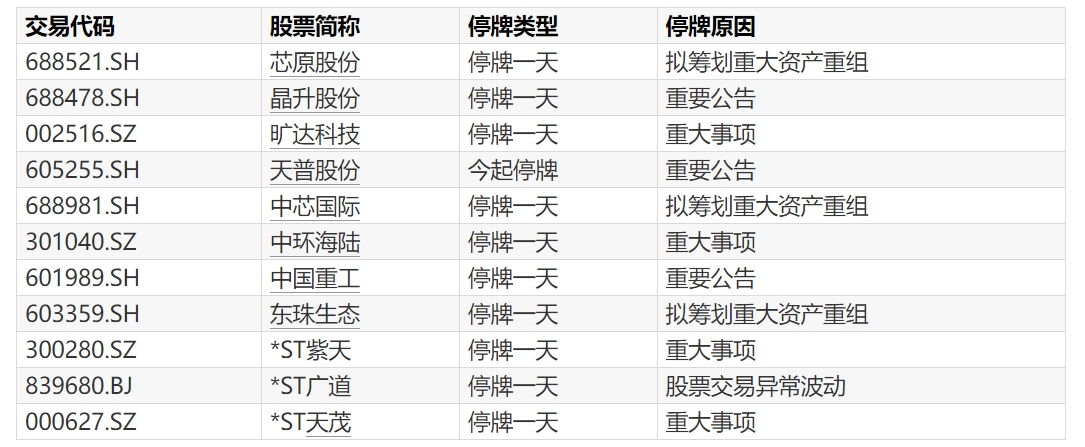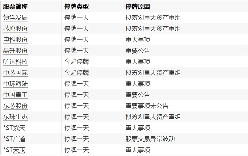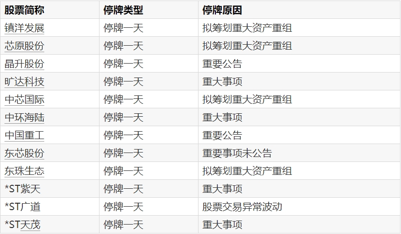 A股停牌提示:13股今日停牌A股停牌提示:13股今日停牌