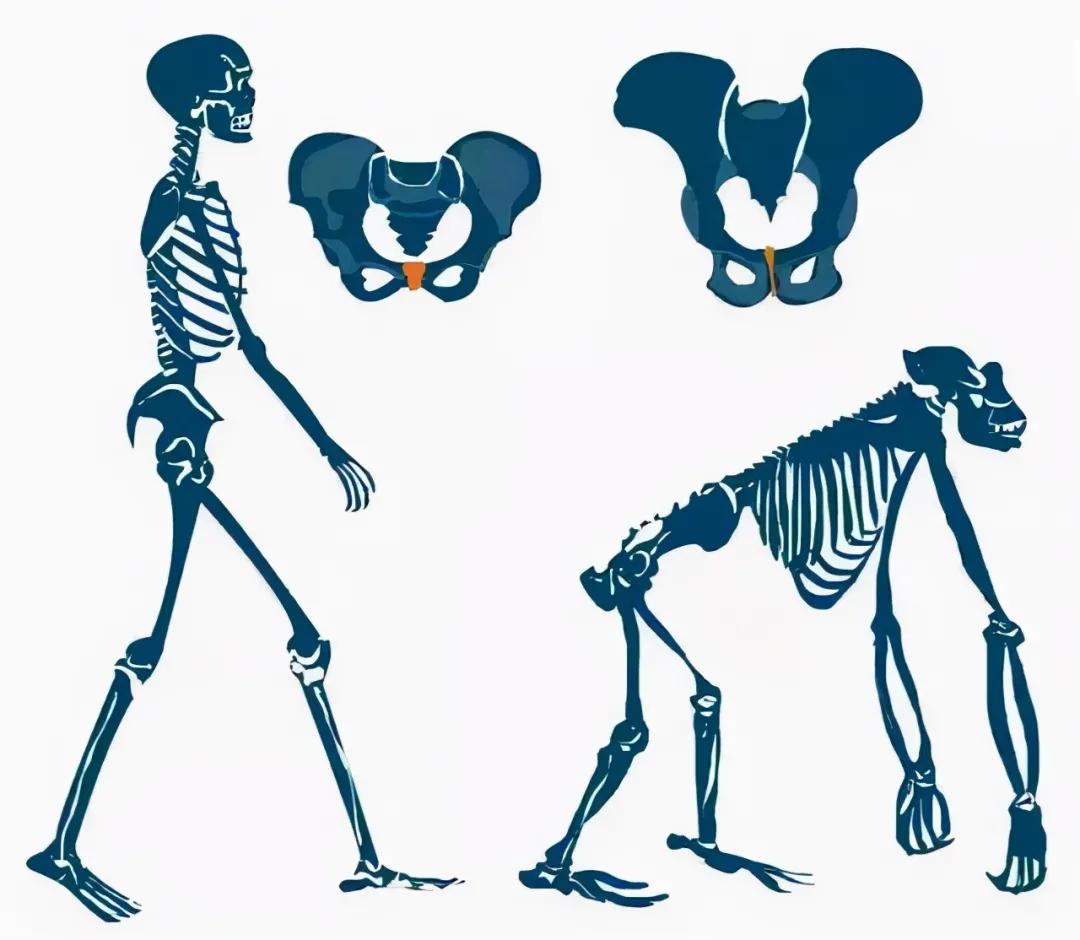 为了保持直立行走的稳定性,人类的盆骨逐渐变小变窄。