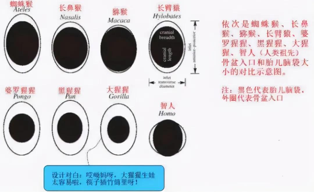 与此同时,人类的脑容量却在不断增大。从早期人类到现代人类,脑容量增长了数倍。这意味着胎儿的头部变得更大,在分娩时,需要通过更为狭窄的产道。这种盆骨变小和胎儿脑容量增大的双重变化,使得顺产的难度和疼痛程度急剧增加 。